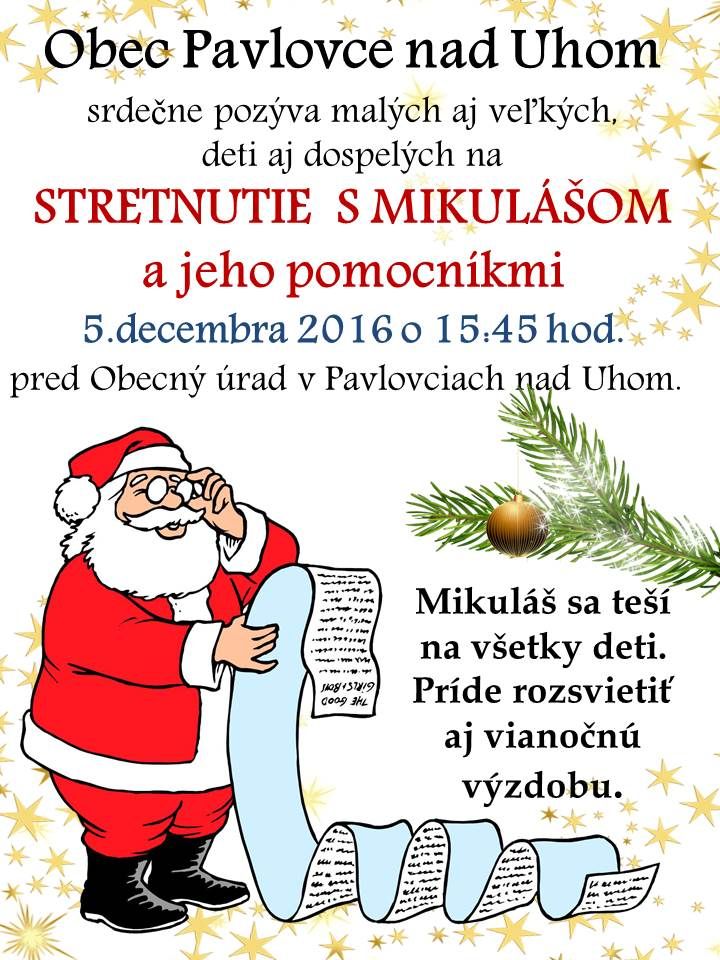 POZVÁNKA na stretnutie s Mikulášom a jeho pomocníkmi – 5.12.2016